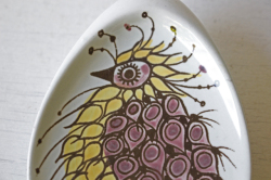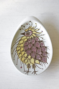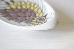 こちらは、1958年からアルミニアが女性デザイナーを起用して製作していたテネラのシリーズになります。デザイナーはBeth Breyen。イエローの可愛らしい鳥が描かれています。小さなサイズなので、お醤油入れやまたティーパックを置いたりといろいろお使いいただけそうですね。
