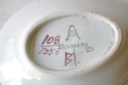 デンマーク、Aluminia/Royal Copenhagen(ロイヤルコペンハーゲン)の小皿です。アルミニアは1882年にロイヤルコペンハーゲンを買収しました。1969年まではアルミニアのロゴも使用されていましたが、その後ロイヤルコペンハーゲンにロゴを統一します。こちらは、バックスタンプからアルミニア時代のものであると分ります。