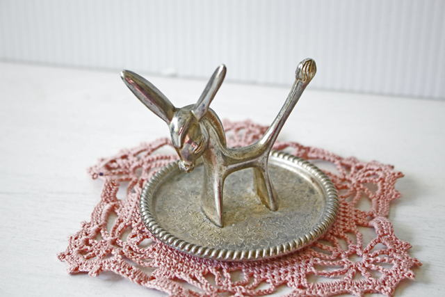 デンマークで見つけたロバモチーフのヴィンテージのアクセサリートレイです。しっぽのピンとした愛らしいモチーフのオブジェですので、飾りながらしっぽにリングなどを掛けてお使いください。