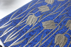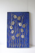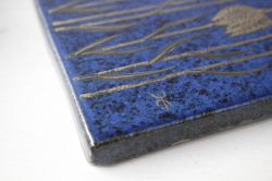 スウェーデン、GUSTAVSBERG(グスタフスベリ)の陶板です。こちらは鮮やかなコバルトブルーの地に星形の可愛らしいフラワーが銀彩でデザインされています。同社にデザイナーとして招かれたドイツ人Heinz Erretのデザインで1970年代から80年代にかけて、スウェーデン各地のフラワーモチーフをデザインした作品です。高級感もあり、美しくお部屋がエレガントに飾られお勧めです。