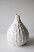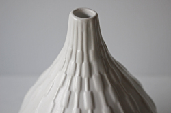 デンマーク、Villaコレクションのベースです。こちらはホワイトカラーの丸みを帯びたフォルム、エンボスで立体的な側面、口の小さいデザインは一輪挿しだけでなく、オブジェとしても楽しめそうです。ホワイトカラーのシンプルなベースですのでリビングや玄関、サイドボードの上などいろいろな場所にマッチするおすすめのベースです。