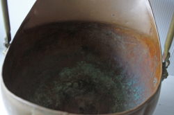 ■コンディション:内底は真鍮特有の経年変化(緑青)、汚れ、持ち手の陶器はカケがあります。全体的には使用感がありますが、ご使用に差し支えるようなダメージはなく、これからも長くご愛用いただけるでしょう。