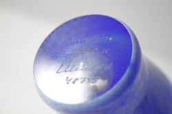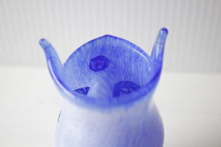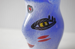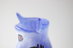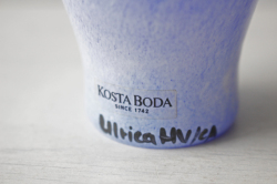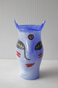 スウェーデン、コスタボダ社製のヴィンテージガラスのハンドペイントの花瓶です。こちらはブルーのマーブル地にユニークな表情の顔がデザインされており、大変個性的です。小振りな作品ながら目力に圧倒されます。飾りやすいサイズですよ。ハンドメイドで作られており、アートピースですので、コレクションされても素敵ですね。独特の世界観を持つウルリカの作品は、一度はまるとコレクションされる方が多くいらっしゃいます。