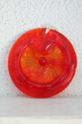 デンマーク、Holmegaard(ホルムゴー)のガラスのサンキャッチャーです。サンキャッチャーは、ガラスで出来た小さな装飾品で窓辺に下げて光を反射させて室内に光を取り込むものなのです。冬の長い北欧ならではのものかもしれません。フォルムも個々に違い、手作りガラスならではの楽しさがあります。こちらは、ぷくっとした小さなつまみのようなものがついた少し立体的なデザインです。