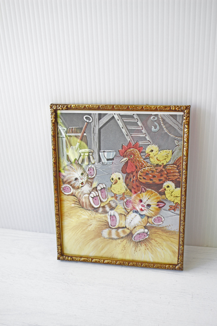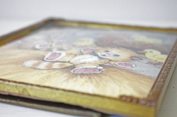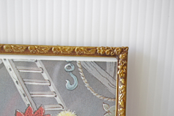 デンマークのアンティークショップで見つけたフォトフレームです。中にはアンティークの刺繍やレース、また写真や古い絵本の切抜きを入れても素敵なインテリアとしてお使いいただけるでしょう。掲載写真には古い絵本の切り抜きが入っています。