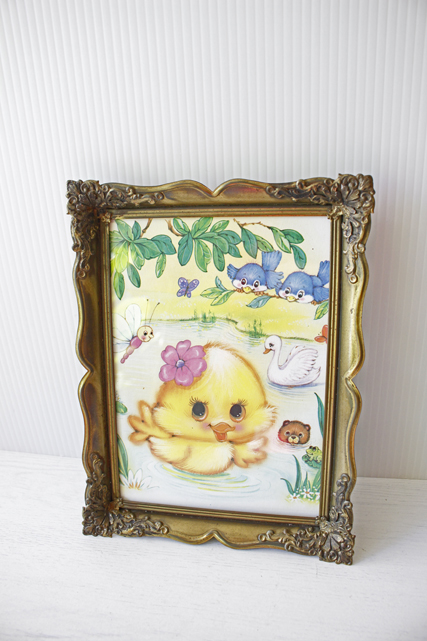 デンマークのアンティークショップで見つけたフォトフレームです。中にはアンティークの刺繍やレース、また写真や古い絵本の切抜きを入れても素敵なインテリアとしてお使いいただけるでしょう。掲載写真には古い絵本の切り抜きが入っています。