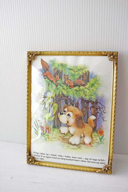 デンマークのアンティークショップで見つけたフォトフレームです。中にはアンティークの刺繍やレース、また写真や古い絵本の切抜きを入れても素敵なインテリアとしてお使いいただけるでしょう。掲載写真には古い絵本の切り抜きが入っています。