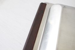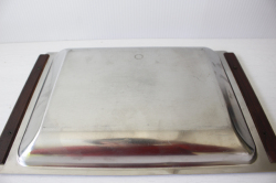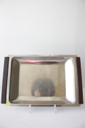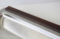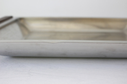 デンマークで見つけたステンレスのトレイです。ステンレスと、チーク材の組み合わせがシャープな印象のステンレスを温かみのある雰囲気に変えています。料理やお菓子をを盛りつけたり、ワンプレートとして、またはトレイとして…シンプルで機能的な造りですので、アイデア次第で多様にお使いいただけます。