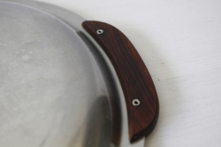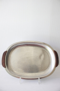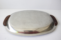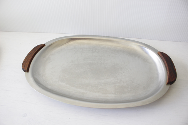 デンマークで見つけたステンレスのトレイです。ステンレスと、チーク材の組み合わせがシャープな印象のステンレスを温かみのある雰囲気に変えています。料理やお菓子をを盛りつけたり、ワンプレートとして、またはトレイとして…シンプルで機能的な造りですので、アイデア次第で多様にお使いいただけます。