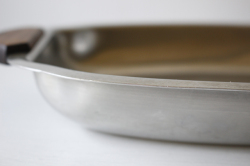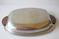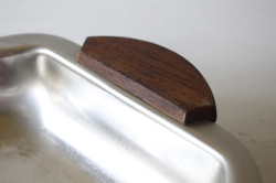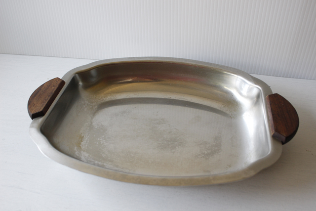 デンマークで見つけたステンレスのトレイです。ステンレスと、チーク材の組み合わせがシャープな印象のステンレスを温かみのある雰囲気に変えています。料理やお菓子をを盛りつけたり、ワンプレートとして、またはトレイとして…シンプルで機能的な造りですので、アイデア次第で多様にお使いいただけます。