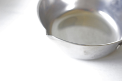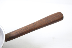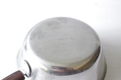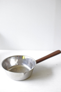 デンマークで見つけたヴィンテージのステンレスソースパンです。柄にはチーク材が使われており、シャープなステンレスに温かな雰囲気をを出しています。食卓に直接出しても様になり、素敵でしょう。