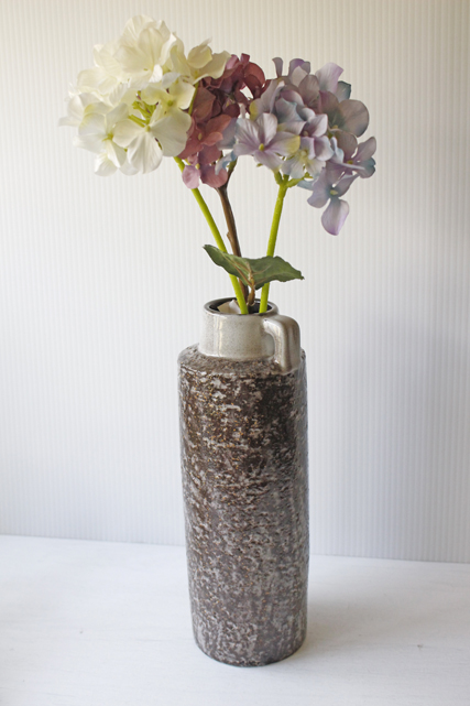 スウェーデン、Upsala Ekeby(ウプサラエクビー)のヴィンテージベースです。すらっとしたシンプルなフォルムにちょこんとデザインされた持ち手と艶のあるチョコレートカラーが美しいデザインです。オブジェとして、またお花を活けても高さがありますので華やかです。