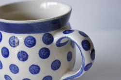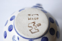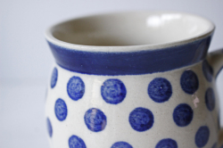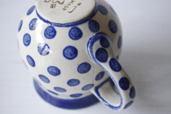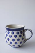 ポーランド製のマグカップです。丸いフォルムに手描きのドット柄がポップで大変可愛らしいです。コロンとしたカップですので、手にも収まりやすく東欧らしいほのぼのとした雰囲気がおススメです。