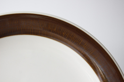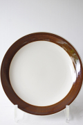 スウェーデン、Rorstrand(ロールストランド)の「KOKA」(男の子の意)シリーズ、ブラウンのケーキプレートです。Hertha Bengtsson(ヘルサ・ベングトソン)デザインの人気シリーズです。清々しい白磁に爽やかなチョコレート色の帯のコントラストが素敵です。