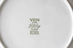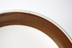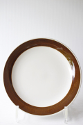 スウェーデン、Rorstrand(ロールストランド)の「KOKA」(男の子の意)シリーズ、ブラウンのケーキプレートです。Hertha Bengtsson(ヘルサ・ベングトソン)デザインの人気シリーズです。清々しい白磁に爽やかなチョコレート色の帯のコントラストが素敵です。
