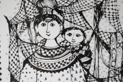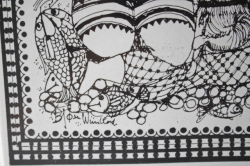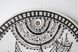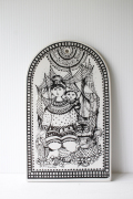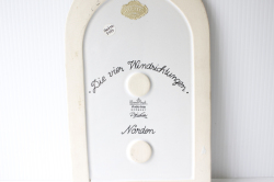 デンマークで人気のアーティスト/Bjorn Wiinblad(ヴョルン・ウィンブラッド)の壁掛けプレートです。タイトルがNorthになっており、北国、グリーンランド人の親子がモチーフとなっているような図柄です。傍らには、ネコが座っています。ヴィヨルンのモチーフは、どこかエキゾチックな雰囲気をかもしているのが特徴です。