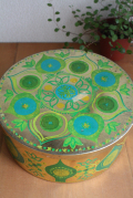 デンマーク、Ira社のヴィンテージ缶です。ゴールド地にグリーンの葉っぱやお花模様が華やかな缶です。大きめなので、お菓子や小物入れなど幅広くご活用いただけるでしょう。お部屋に飾っておくだけでも存在感のある素敵な缶です。