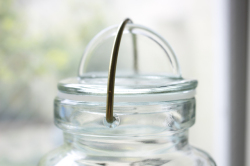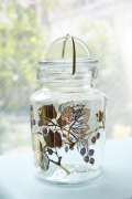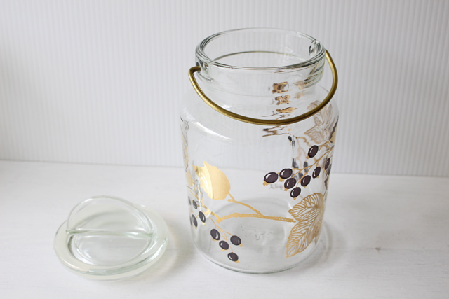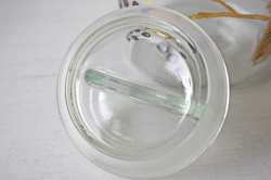 フィンランド、Riihimaen社の密閉ができる蓋付きの保存ボトルです。1910年創業のリヒマエン社は、主に家庭用のボトルやケースを製造していたガラスメーカーです。中でもこちらの保存容器は、開閉の仕組みにもデザイン性が感じられ、キッチンに飾っておきたくなります。底にはリヒマエン社のトレードマークのオオヤマネコがデザインされています。500デシリットルごとにメモリがついているので、オリーブオイルやミルクを保存するのはとても便利かもしれません。ピクルスやフルーツのシロップ、塩レモンなどを作ってみてはいかがでしょうか。