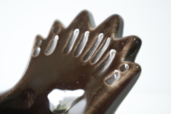 スウェーデン/Rosa Ljungデザインのオブジェです。こちらは小鳥がモチーフになっていて中央には、Rosa Ljungの得意なお花がデザインされており可愛らしい雰囲気です。ちょおkレートブラウンのシックな小鳥さんです。