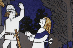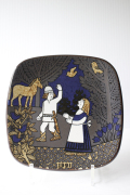 ARABIAのイヤープレートです。こちらは、フィンランドの抒情詩「カレワラ」を題材にして製作されています。1976年から1999年までの合計24枚にわたるシリーズです。デザイナーはライヤ・ウォシッキネンで彼女らしい緻密で温かな背景に人物の優しい眼差しがこちらの作品の魅力となっています。裏面には、フィンランド語、スウェーデン語、英語で絵柄のシーンの詩が書かれています。