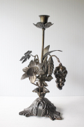 真鍮の燭台です。こちらはフレンチスタイルの燭台でフラワーモチーフやブドウなどロマンティックな装飾が施されています。レースなどと一緒に飾っていただくと一層素敵です。オブジェとして飾って頂くと、落ち着いたアンティークのインテリアを演出できそうです。