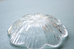 デンマークの王室御用達ブランド、Holmegaardのガラス小皿です。こちらはクローバーのようなお花のモチーフになっていて、花びらが1枚1枚立体的に表現されています。