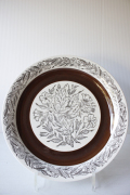 スウェーデン、Gefle社(ゲフレ)のフォンタナシリーズのディナープレートです。フォンタナは北欧の小さなお花です。ブラウンのハンドペイントのラインに繊細な植物がプリントされています。上品で優しい雰囲気のデザインは、水色やクリーム色など春色のテーブルクロスとも相性がよいでしょう。