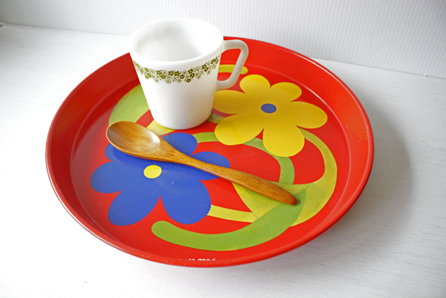 デンマークで見つけたヴィンテージのスチールトレイです。赤や青、黄色と鮮やかなビタミンカラーが使われています。夏は氷の入ったグラスにジュースを注いで、冬は暖かい飲み物のマグカップを乗せてカジュアルに使える、どこか懐かしいお花は、キッチンを明るく彩ってくれるでしょう!