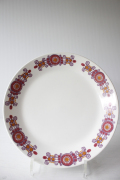 ノルウェー、フィッギオの中でも可愛らしいレトロモダンなモチーフが多く、今でも人気のあるチューリデザインのディナープレートです。こちららは愛らしいピンク、オレンジ、パープルの暖色系の色合いのモチーフがお皿のリムにぐるりとデザインされており、お料理を乗せても大変華やかになります。現地でもあまり見かけないデザイン、今回はコンディションも良く、大変おすすめです。