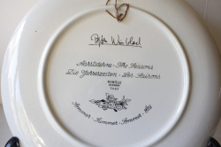 デンマークの人気デザイナーBjorn Wiinblad(ヴョルン・ウィンブラッド)の美しい絵皿です。こちらは春・夏・秋・冬の4枚が存在するシリーズです。こちらのプレートは、春になります。壁にかけられるようになっておりますので、シーズンごとに掛けかえられても素敵ですね。