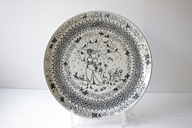 デンマークの人気デザイナーBjorn Wiinblad(ヴョルン・ウィンブラッド)の美しい絵皿です。こちらは春・夏・秋・冬の4枚が存在するシリーズです。こちらのプレートは、冬になります。壁にかけられるようになっておりますので、シーズンごとに掛けかえられても素敵ですね。