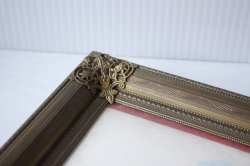 デンマークのアンティークショップで見つけたフォトフレームです。中にはアンティークの刺繍やレース、また写真や古い絵本の切抜きを入れても素敵なインテリアとしてお使いいただけるでしょう。掲載写真には古い絵本の切り抜きが入っています。