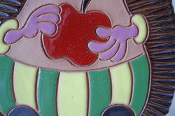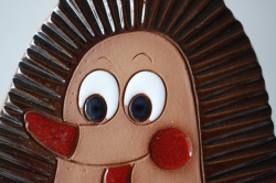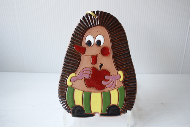東欧ヴィンテージ、陶器の壁掛けです。こちらはほっぺの真っ赤な可愛らしいハリネズミのモチーフで、チェコの人気アニメ、クルテクに出てくるような風貌の愛らしいキャラクターがデザインされています。