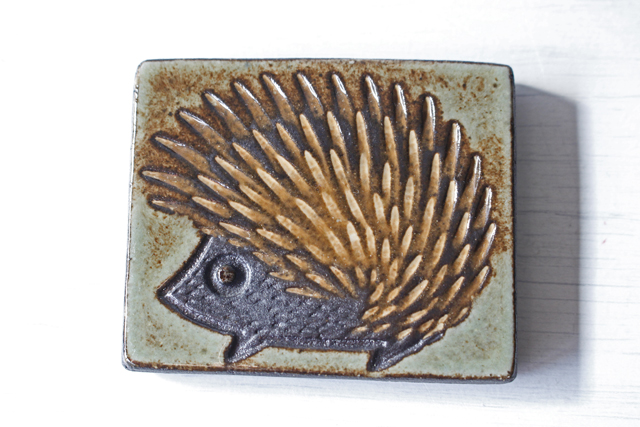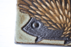 デンマークで見つけたヴィンテージの陶板の壁掛けです。小さな飾りやすいサイズで、愛らしいハリネズミがデザインされています。ほのぼのと幸せな気持ちになる可愛らしいモチーフですのでお部屋や玄関先などの雰囲気を和ませてくれるでしょう。裏には壁に引っ掛けられるように穴が開いています。