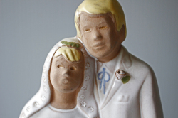 スウェーデンのjie gantofta社製の陶器のオブジェです。こちらは若いカップルの結婚式の様子がデザインされており、シンプルなドレスを着て可愛らしいフラワーを持った新婦が微笑ましい、大変ロマンチックな愛らしいモチーフで幸せな様子が伝わります。