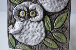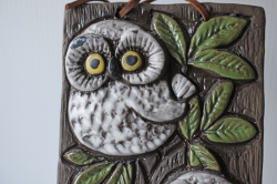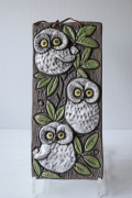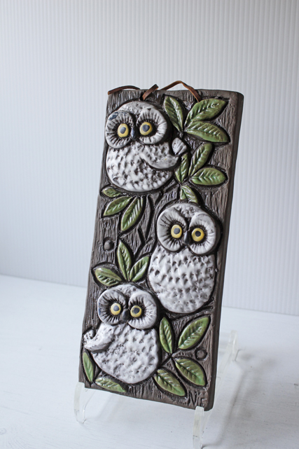 スウェーデン、Bromma Keramik社のヴィンテージ陶板の壁掛けです。目のくりくりとした可愛らしいフクロウが3羽、キョトンとした顔で佇んでおり、ユニークなモチーフです。フクロウは幸福のモチーフでお気に入りの場所に飾って頂くのにお勧めです!