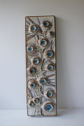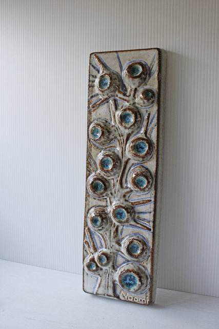 デンマーク、SOHOLM(スーホルム)社の陶板の壁掛けです。枝に青い実がなっているのでしょうか?大胆なデザインのに目を奪われます。デンマークでもコレクターのいるNoomiデザインです。大きなサイズで重厚感があります。玄関に飾られても素敵です。