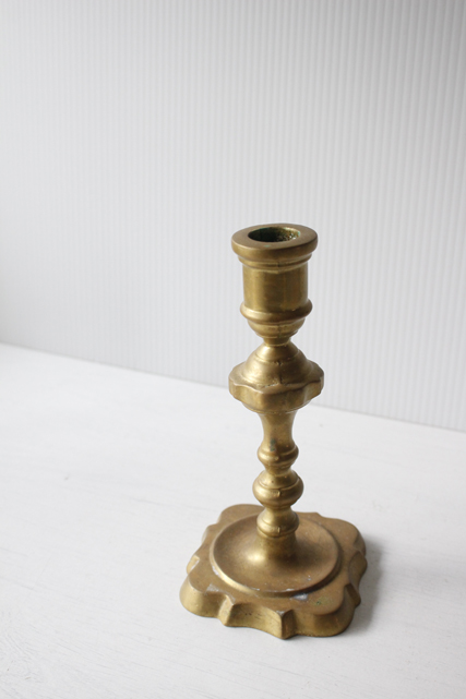 デンマークで見つけた真鍮のキャンドルホルダーです。こちらはすっきりとしたフォルムで大変クラッシックな印象です。レースなどと一緒に飾っていただくと一層素敵です。オブジェとして飾って頂と、落ち着いたアンティークのインテリアを演出できそうです。