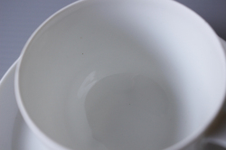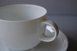 ドイツの一流ブランド、ローゼンタールのスタジオラインにて製造されたコーヒーカップ&ソーサーです。フィンランド出身のデザイナーTapio Wirkkalaの作品で、とても繊細な薄焼きの陶器に三つ足のついた可愛らしいフォルム、ドット模様が透かし模様のように入っています。本当に美しいピュアホワイトで、紅茶やハーブティの繊細なお色が美しく映えるでしょう。 今回入荷分は、未使用品でコンディションもよくおススメです。