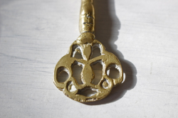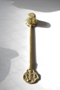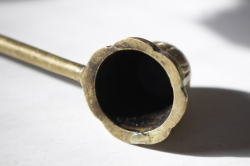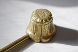 デンマークで見つけた真鍮のろうそくの消すためのカバーです。ろうそくを吹き消さないで、こちらの火消をかぶせるときれいに火を消す事ができます。こちらは、壁の高いところに灯したろうそくを消すためのもので長めでどっしりと高級感がある作りとなっています。一緒に飾ると雰囲気もアンティーク、ヴィンテージらしい趣があり、素敵なインテリアが演出できそうです。