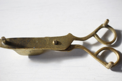 デンマークで見つけた真鍮のろうそくの芯取りです。ろうそくを吹き消すだけでは、芯が残り、黒いモクモクとした煙が出ることもあり、こちらの芯取りで、焦げたススをすくうように当てると、芯取りの受け皿にススがパラパラっと取り除くことができ、大変実用的です。オブジェとして飾って頂いても、落ち着いたアンティークのインテリアを演出できそうです。