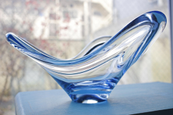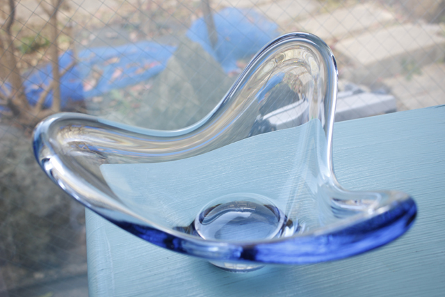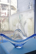 デンマーク、Holmegaard(ホルムゴー)のガラスのボウルです。こちらは、Per Lutkenの作品です。柔らかな曲線が美しいフォルムです。大きく開いたフォルムですので、オブジェとして、お花を並べたり、オアシスや剣山でフラワーアレンジメントを楽しんだり、フルーツなどを盛りつけてもよさそうです。