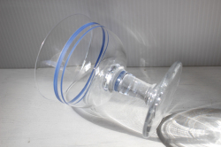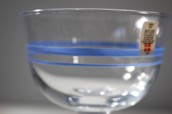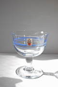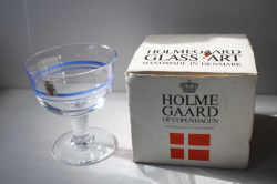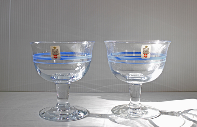 デンマークの王室御用達ブランド、Holmegaardの足つきカップです。ハンドメイドで作られており、側面にはブルーのラインが入っておりアクセントになっていますアイスクリームやヨーグルト、フルーツポンチなどにちょうど良いサイズです。箱付きですが、箱は劣化、シミがあります。