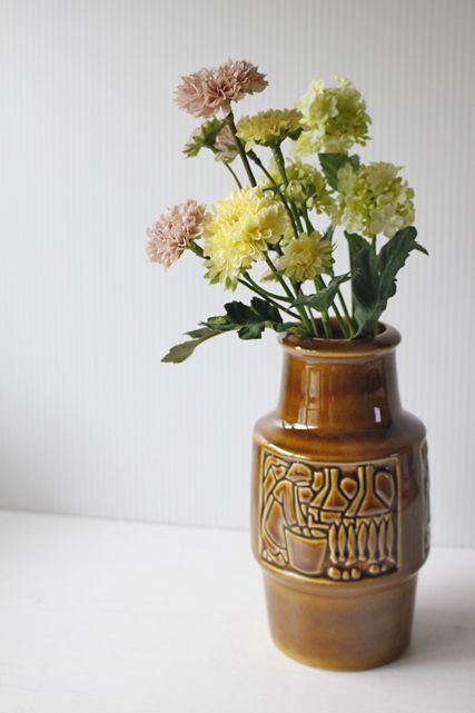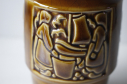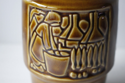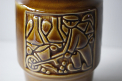 デンマーク、Michael Andersen & Son社の花瓶です。漁港を舞台にしているのでしょうか。漁港で働く女性や男性がモチーフとしてデザインされているようです。ボーンホルムは島なのでそのような光景が身近にみられたのでしょう。3面違った図柄になっています。