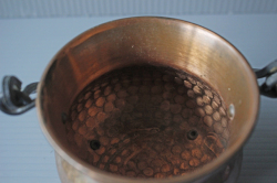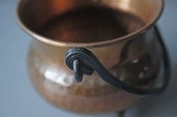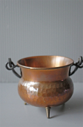 デンマークで見つけた真鍮×銅製の入れ物です。銅色の美しい色合い、銅ならではの打ち出しが施されています。しっかりとした作り、またフォルムが脚付き、持ち手付きと大変凝った作りになっています。鉢カバーとして飾って頂くなど、アイデア次第で楽しんでみてください。シャビークラッシックがお好きな方、インテリアに取り入れてみてはいかがでしょうか。
