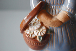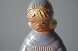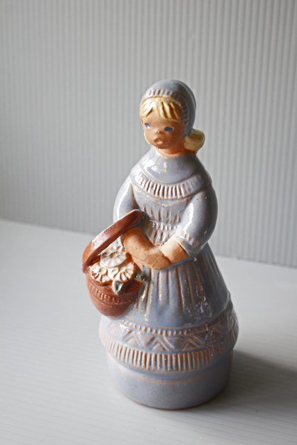 スウェーデンのjie gantofta社製の陶器のオブジェです。こちらはスウェーデン人の女の子が淡いブルーのドレスとブロンズの髪にスカーフを巻いて、お花を摘んでいる様子が微笑ましいです。バスケットを持ってほのぼのとしたお勧めのオブジェです。