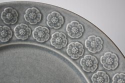 デンマーク、Jens.H.Quistgaard(イェンス・クイストゴー)デザインAzurシリーズのケーキプレートです。杏の花の可愛らしいモチーフでありながら、ブルーグレーの落ち着いた色合いが甘くなりすぎず素敵です。ツヤのないマットな釉薬が使われており、見ていてホッと和む雰囲気を持っています。こちらは1点1点釉薬の濃さや形状が微妙に違います。工業製品とは違う手作りの良さをお楽しみ下さい。