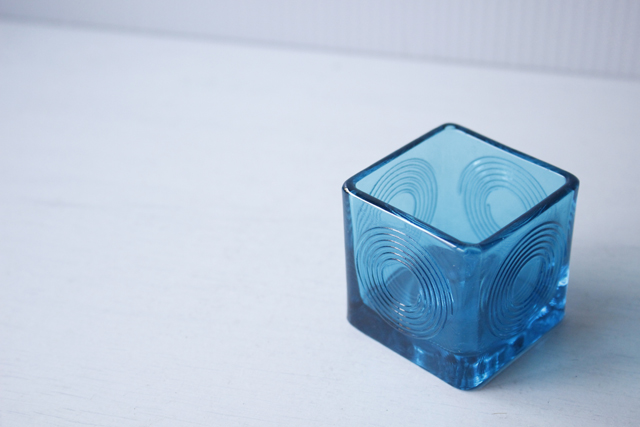 Holmegaard(ホルムゴー)のガラスのキャンドルホルダーです。デザイナーは、Per Lutkenで渦巻きのデザインが懐かしいようなモダンなような素敵な佇まいです。