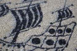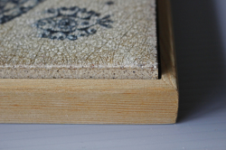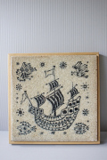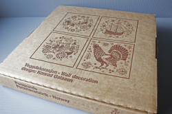 ノルウェー、PORSGRUND社の陶板の壁掛けです。帆船の周りを空を飛ぶ鳥、海を泳ぐ魚がメルヘンタッチでデザインされています。表面にガラス質の釉薬をのせて貫入を入れた味わいのある個性的な製法。木枠にはフックがついているので壁掛けにできます。今回入荷分は箱入りでおススメです。