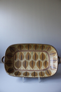 デンマーク、DYBDAHLの長皿です。モスグリーンの上にブラウンの優しいリーフ模様がデザインされており、どこか素朴で温かな雰囲気があり、ホッと和みます。Dybdahlの作品は市場でもかなり少なくなってきておりますので、お探しの方はお見逃しなく。